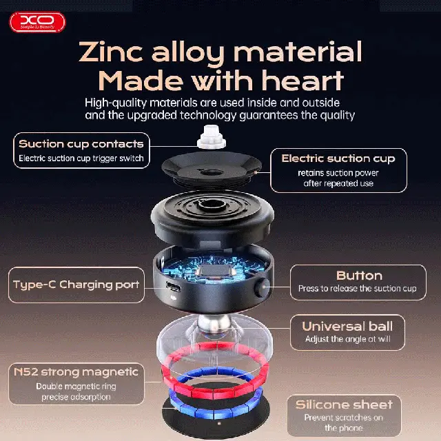 هولدر مکشی مگنتی الکتریکی چرخشی ۳۶۰ درجه قابل شارژ داخل خودرو ایکس او C162